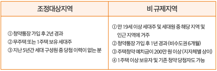 조정대상지역에서 풀릴 경우 위와 같이 청약 1순위 조건도 변경됩니다.