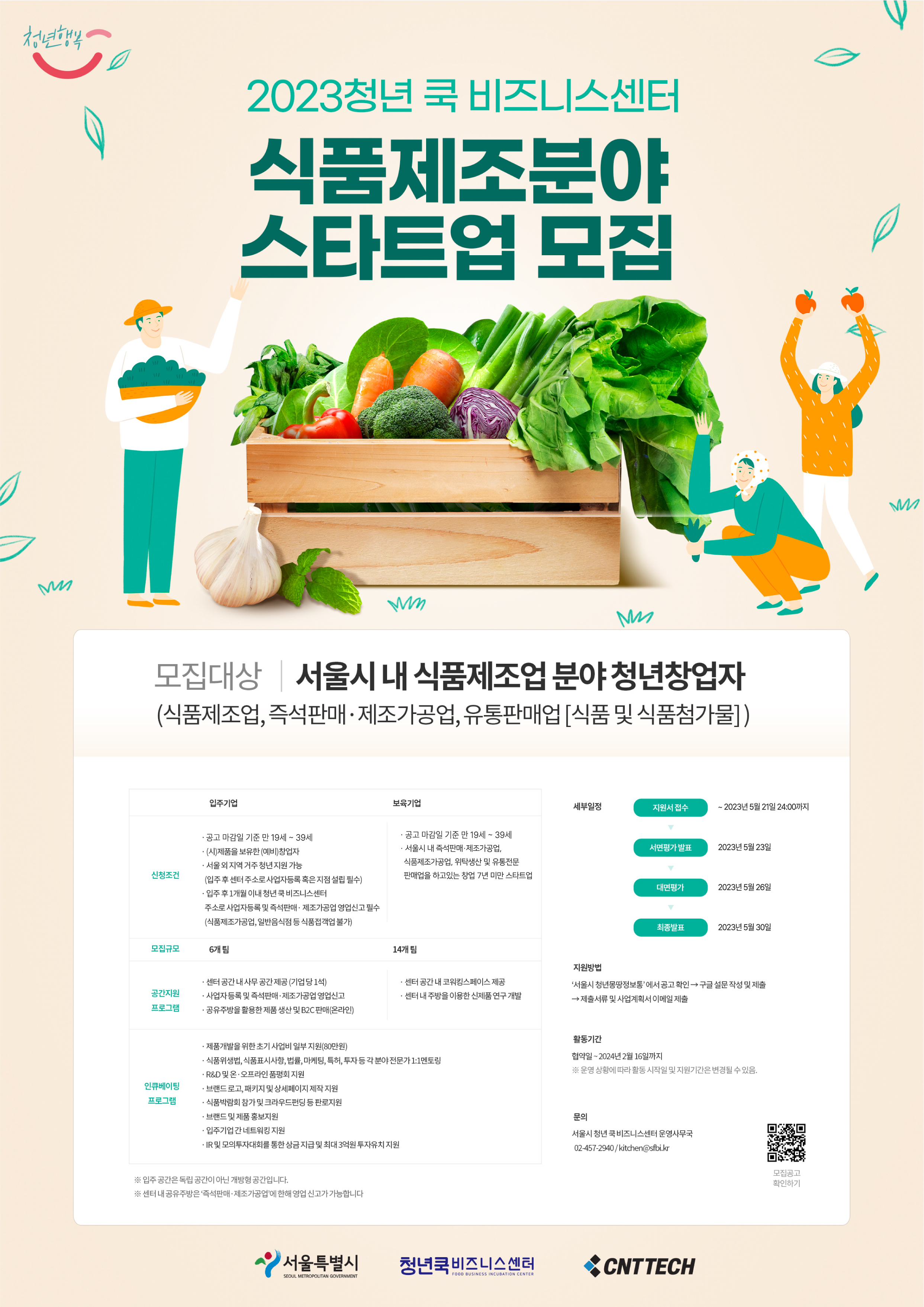 청년 쿡 비즈니스센터 운영사무국 : ☎ 02-457-2940, ✉ kitchen@sfbi.kr