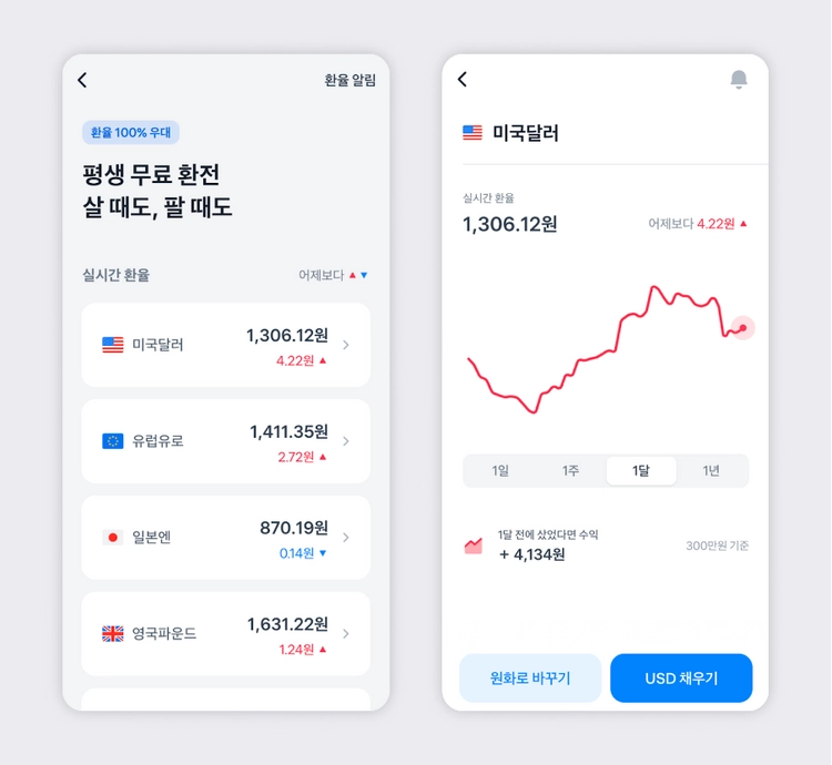 토스뱅크 외화통장 추천하는 이유1: 살 때도 팔 때도 평생 환전 수수료가 없어요.